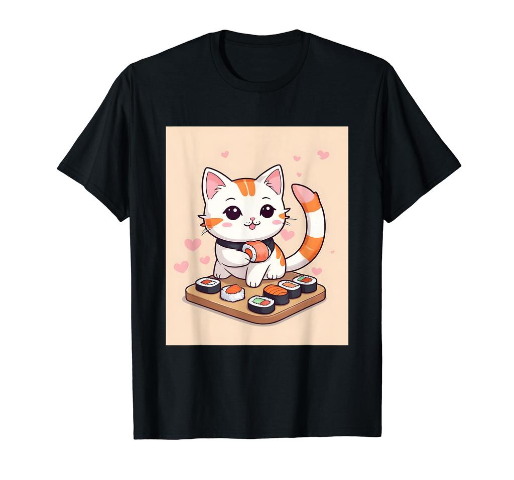 Dinge bedruckt Kawaii, Katze, Sushi, niedlich, Hirse, Japanisch, T-Shirt