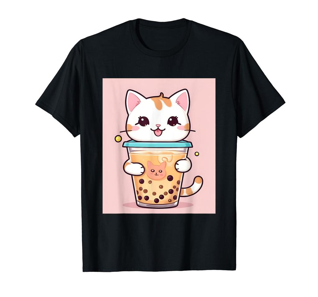 Bubble-Dinge bedruckt Kawaii, Katze, Boba, Tee, niedlich, Japanisch, T-Shirt