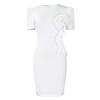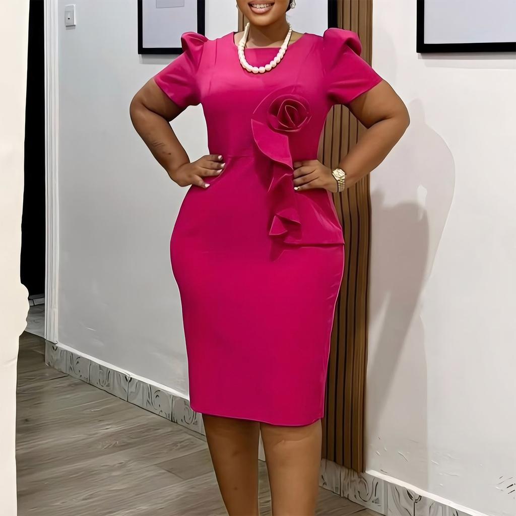 Ein neues, modisches und elegantes einfarbiges Kurzarmkleid mit körpernaher Passform, Spitze und Rüschenkanten für Damen