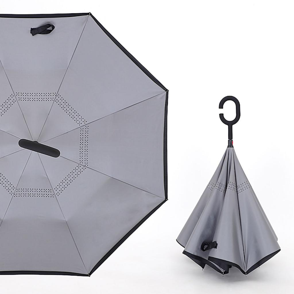 Doppelter umgekehrter Regenschirm Faser Wasserdicht Leichtgewicht Umgekehrter Regenschirm mit C-förmigem Griff Grau