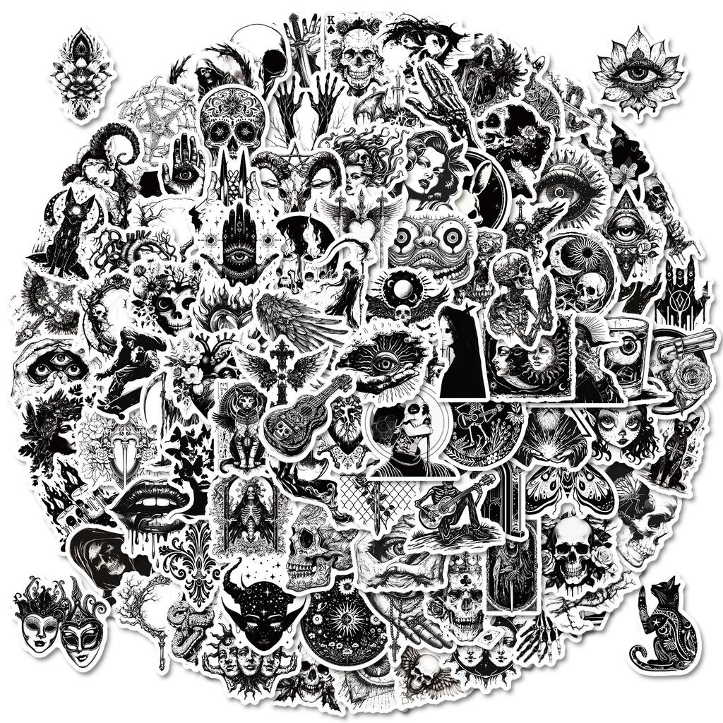 100 Schwarz-Weiß Goth Punk Graffiti Aufkleber Koffer Laptop Skateboard Wasserdicht DIY Aufkleber