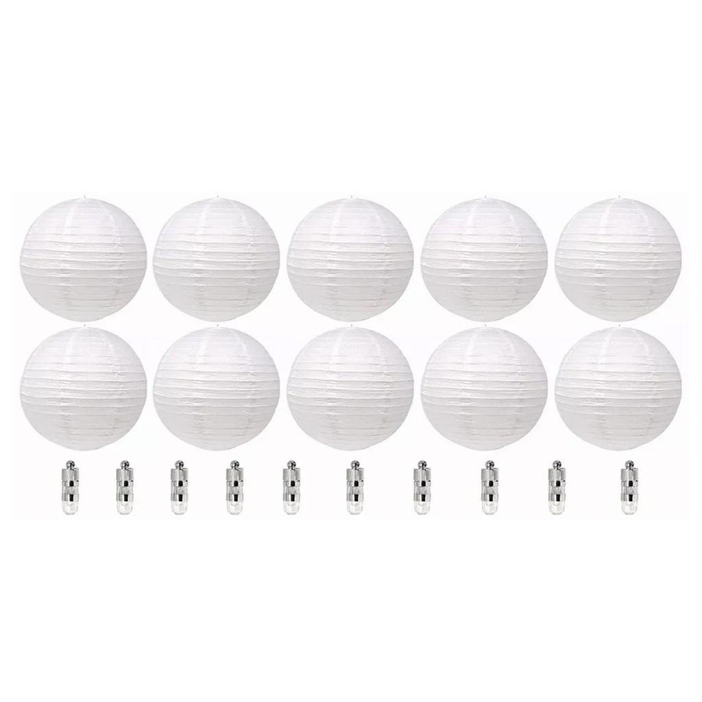 Chinesische weiße Papierlaterne Dekorative runde Papierlaternen mit 10 LED-Lichtern für Hochzeitsfeier