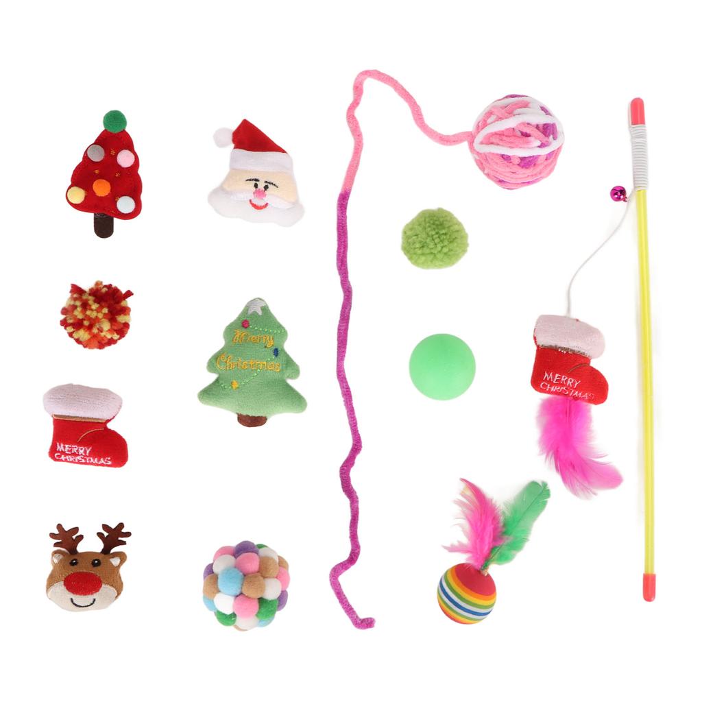 12 STÜCKE Weihnachts-Katzenspielzeug Lindern Langeweile Interaktives Haustier Katze Sortiertes Spielzeug mit Feder für Kätzchen