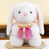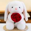 Valentinstag, eine Rose haltende Hasenpuppe, Mädchen ein Geständnisgeschenk machen, Kindertagsgeschenk, kleine weiße Hasenpuppe