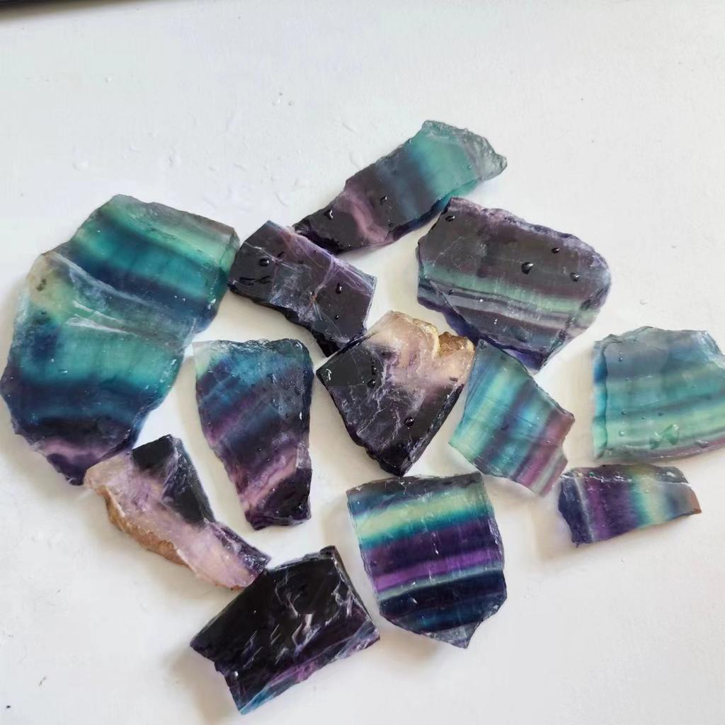 Natürlicher Hausgarten Regenbogen Bunt Roh Fluorit Kristallstein Dekoration Heilkristall Heimdekoration Stein und Kristalle