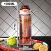 1000 ml Sportwasserflasche Großvolumiger Kunststoffwasserbecher mit Skala Tragbare Outdoor-Reise-Fitness-Krüge Trinkkessel