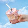 Hoher Erscheinungsgrad Doppelwandiges Trinkglas Henkel Strohhalmbecher Büro Trinkbecher Frühstück Milchbecher