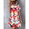 JKASHDK Damenmode Sommer Frühling Colour Block Print Kurzarm POLO-Kragen Lockere Taille Lässige Kleider