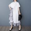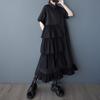 DIMANAF 2025 Women Plus Size Summer Dress Casual Dress Basic Vintage Lace Spliced Buttons Loose Long Dress