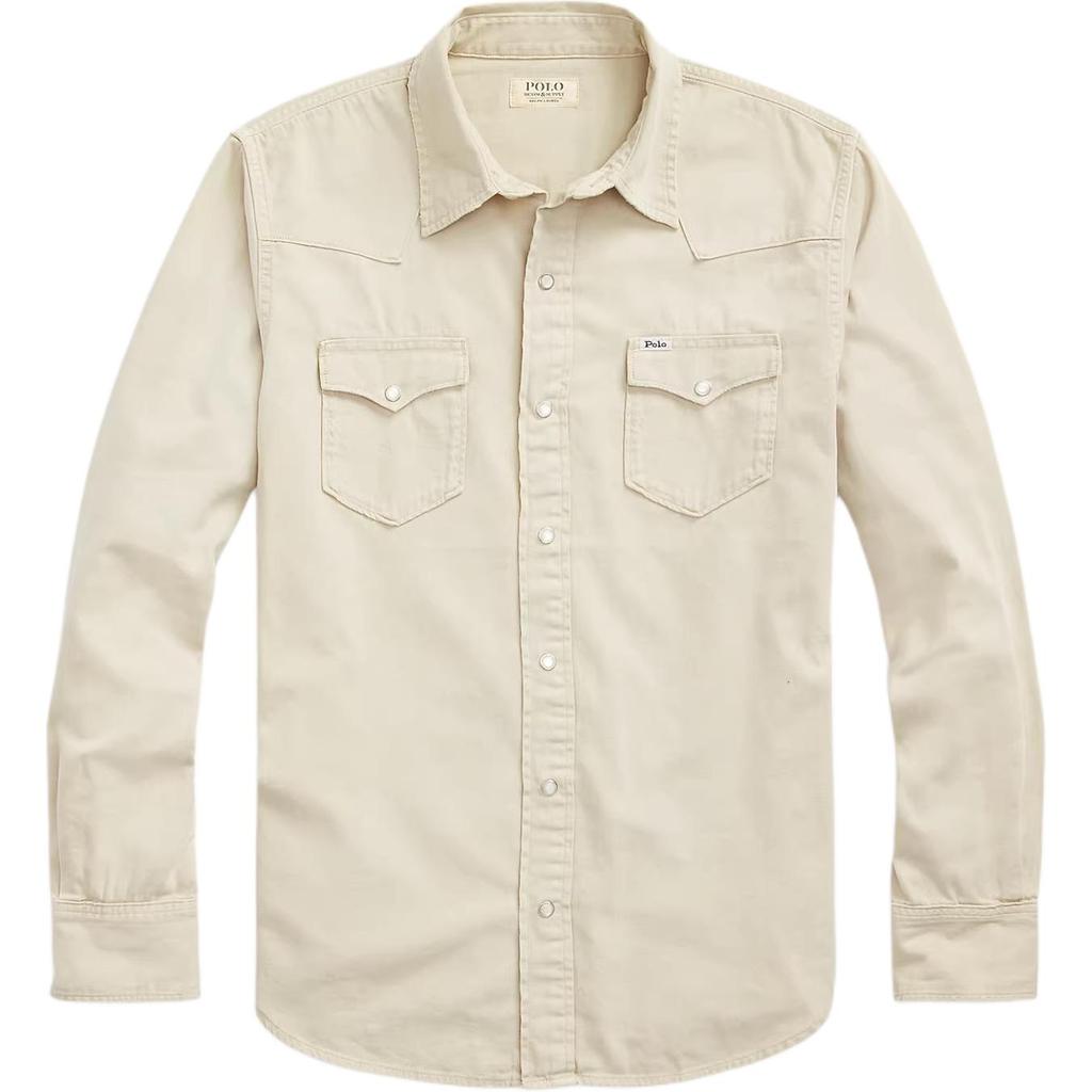 Polo Ralph Lauren Solid Color Single-Breasted Loose Casual Long Sleeve Shirt Men shirts Khaki 710907358-003