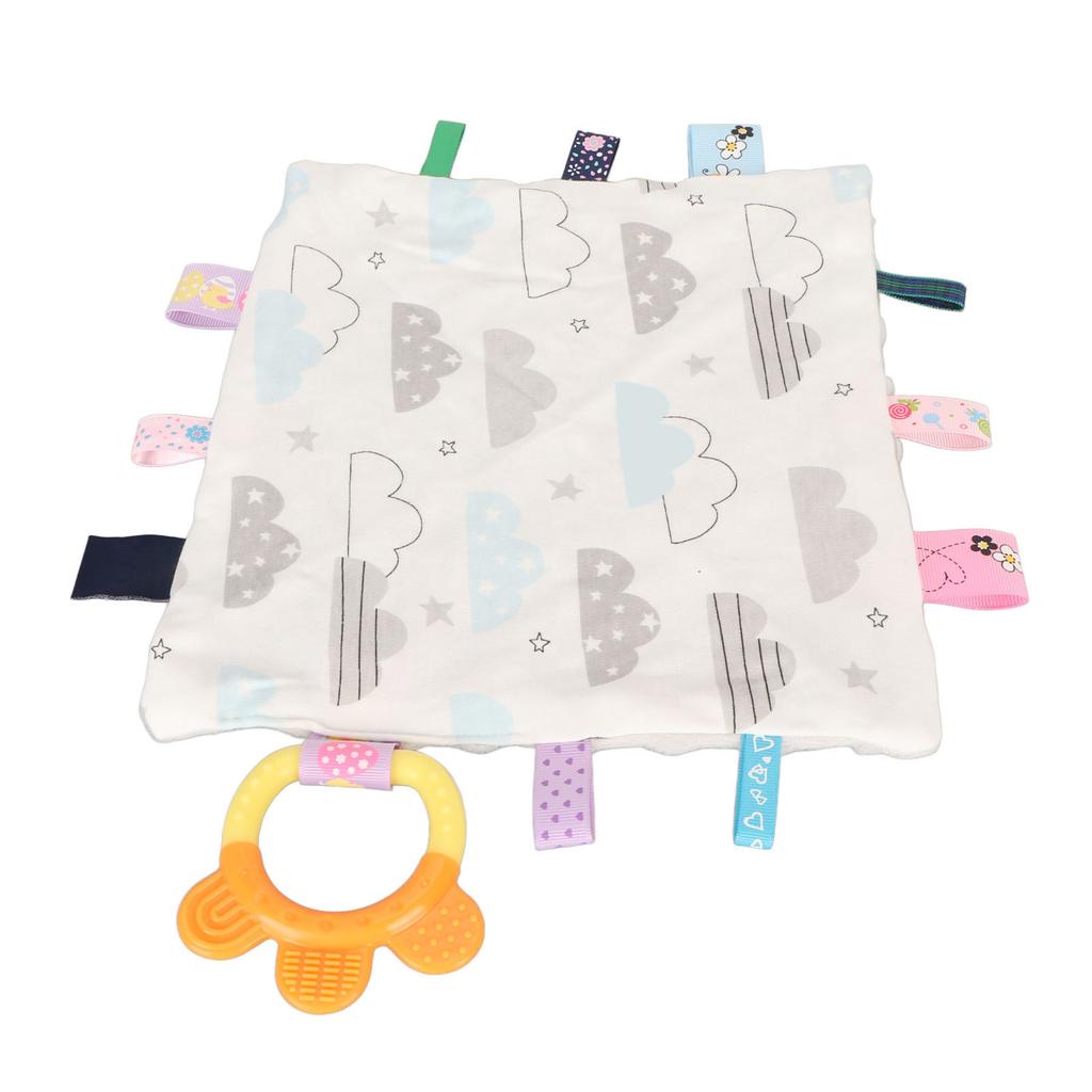 Baby Tags Sicherheitsdecke Weiche Baumwolle Niedliches Wolkenmuster Beruhigende sensorische Decke mit Beißring