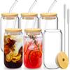 350ml/550ml Glastassen mit Bambusdeckeln und Strohhalm 1 Stück Einmachgläser Kaffeetasse Bierdosenform für Cocktail Whiskey Milch Saft Cola