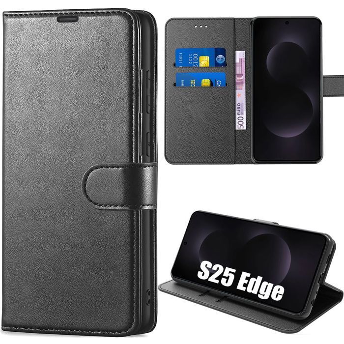 Coque de protection - BOOLING - pour Samsung Galaxy S25 Edge - Antichoc - Cuir synthétique - Noir
