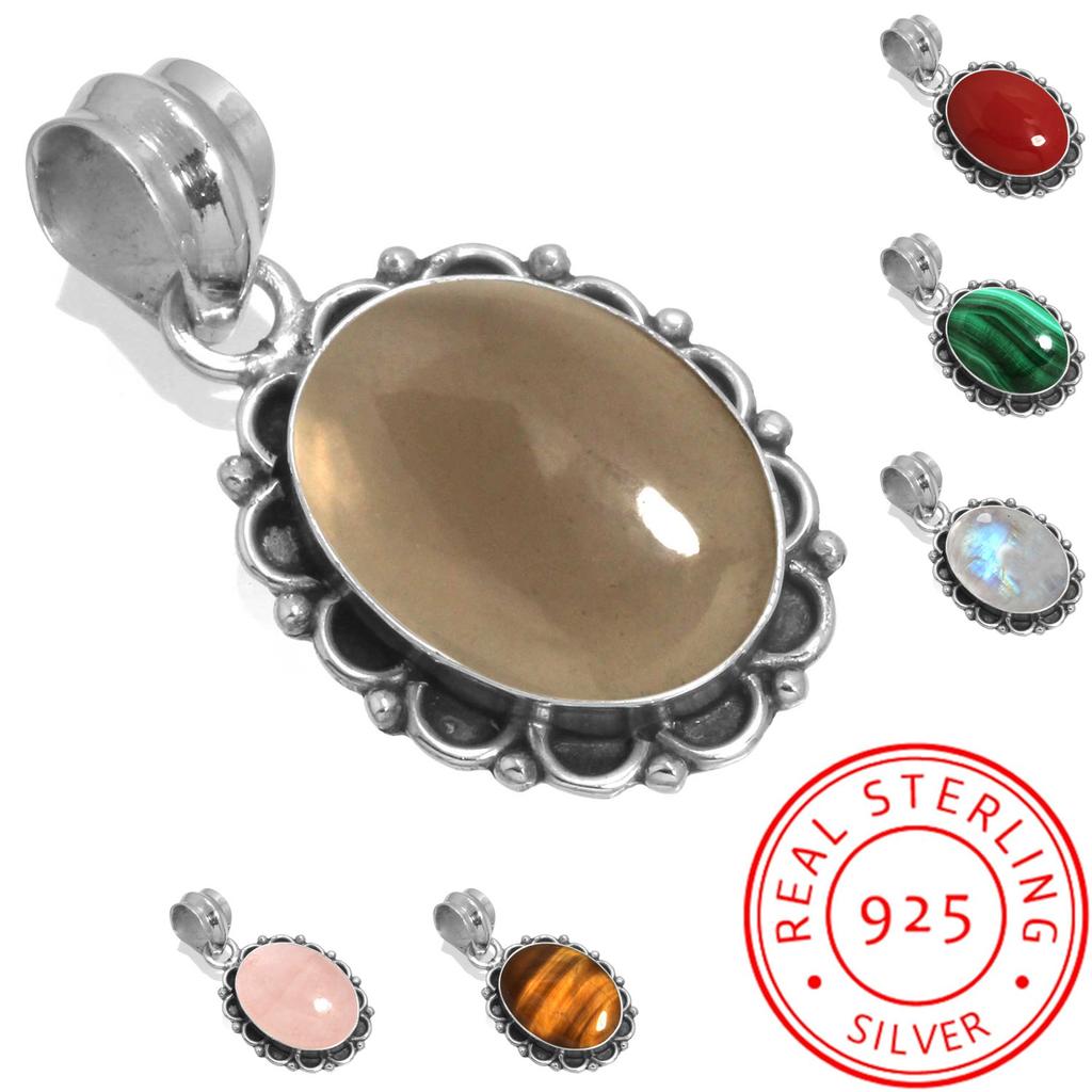 925 Sterlingsilber Anhänger Damen Edelstein Handgefertigter Schmuck Ostergeschenk Malachit Mondstein Rosenquarz Roter Stein Rauchtopas Tigerauge Mode