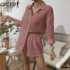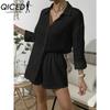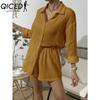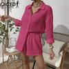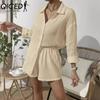 QICED Damen Frühling und Sommer Mode Einfarbig Langarmhemd Anzug Damen Lässig Locker Shorts Zweiteiliges Set