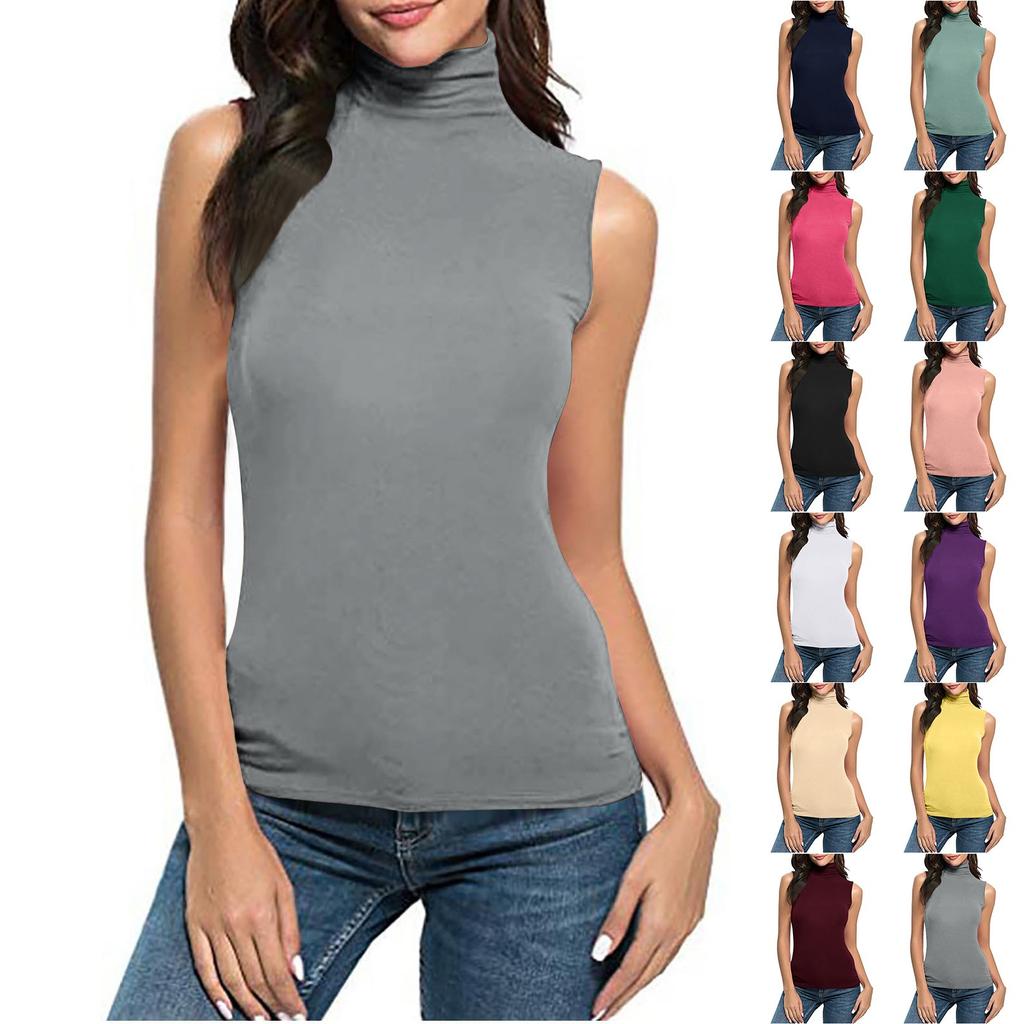 Modisches, hochgeschlossenes, schlankes, lässiges, ärmelloses Weste-Oberteil mit atmungsaktivem Oberteil für Damen