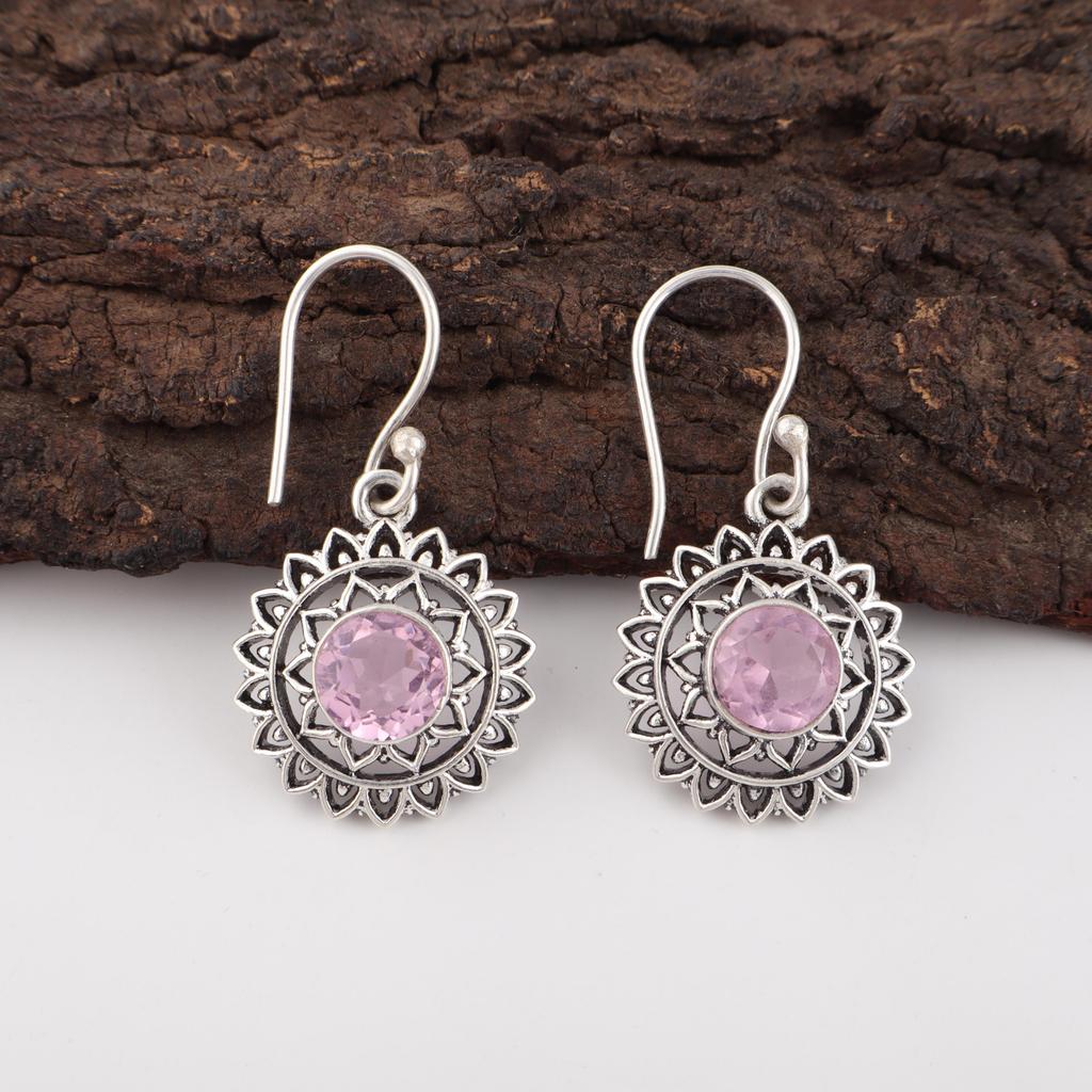 Rosa Kunzit Ohrring, Handgefertigter Edelstein 925 Massiv Sterlingsilber Ohrring Antikschmuck, Für Verlobungsgeschenk
