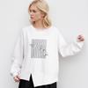 2024 Damen Herbst Lockerer Hoodie T-Shirt Asymmetrischer Druck Langarm Weißer Pullover