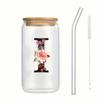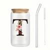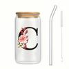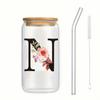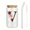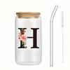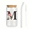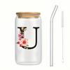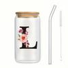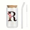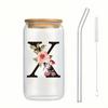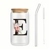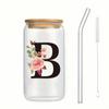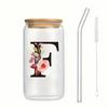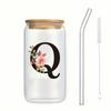 Alphabet Blumen Trinkglas Buchstabe A-Z Eiskaffee Wasser Saft Flasche Tragbarer Klarer Becher mit Deckel Strohhalm Bürste Geburtstagsgeschenke