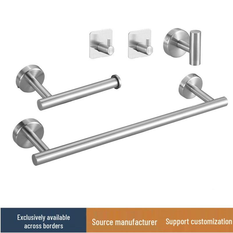 Edelstahl Stanzfreies Badezimmer Handtuch- & Papierregal Set mit Haken & Ringen