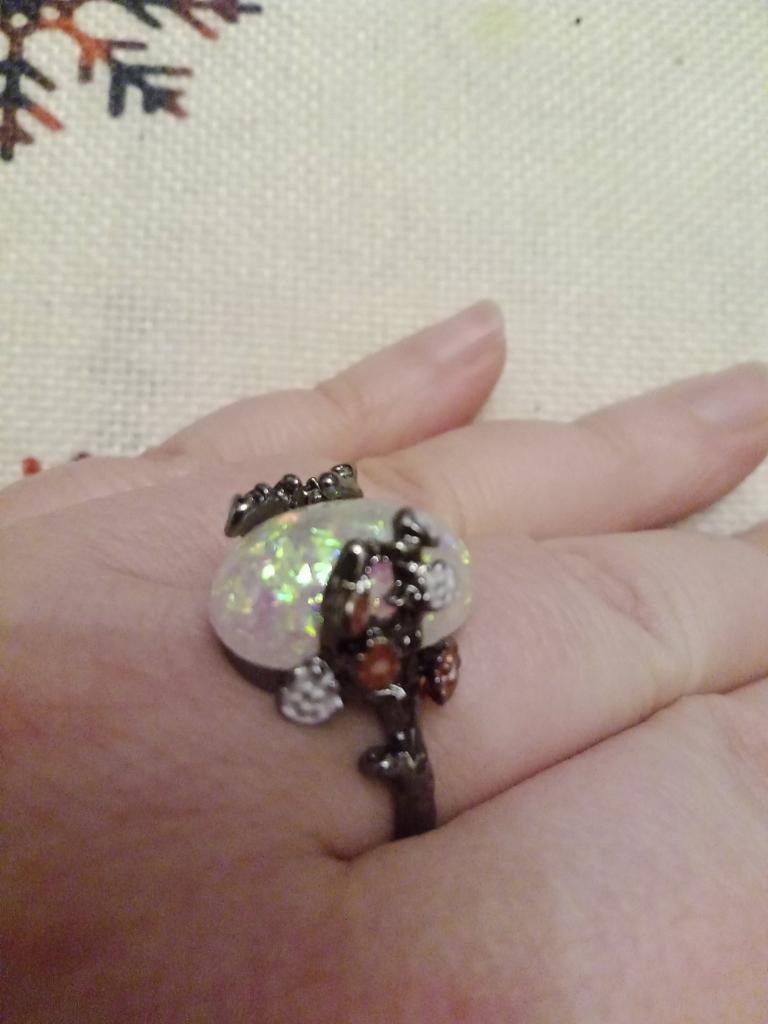 Sanjie Wunsch Opal Ring, Schwarzer und Goldener Modeschmuck