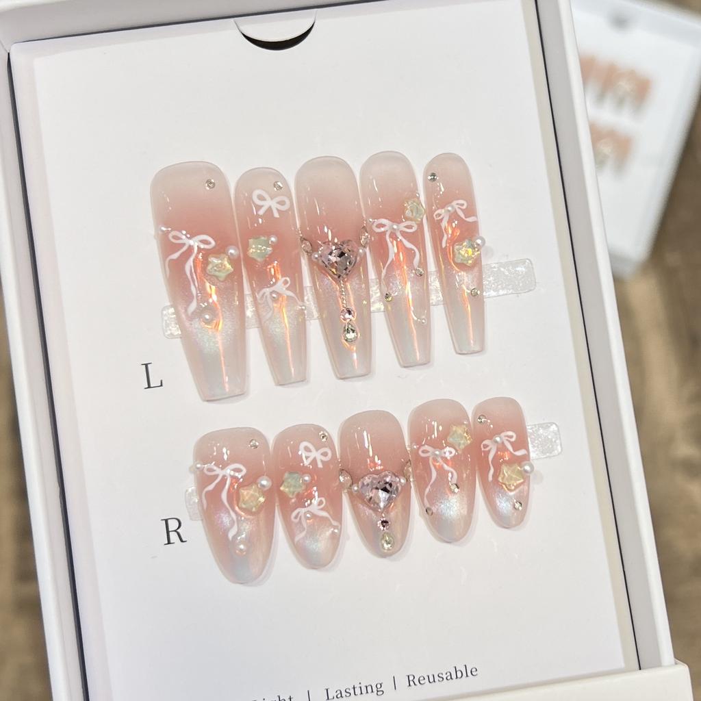 Handgewebte Rüstung High-End Französisch Rosa Liebesdiamant Schleife Maniküre