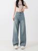 Damen Wide-Leg Jeans mit leichter Stickerei, hoher Taille - Übergröße, Slim Fit