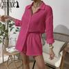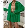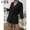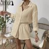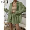 HNXC Damen Frühling und Sommer Mode Einfarbig Langarmhemd Anzug Damen Lässig Locker Shorts Zweiteiliges Set