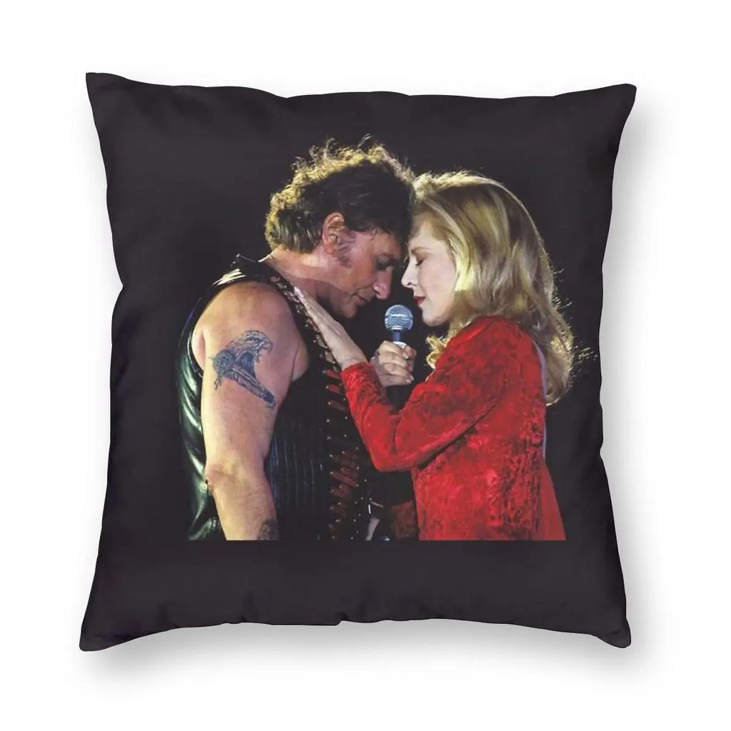 Johnny Hallyday Und Sylvie Kissenbezug Polyester Dekokissen Rockmusik Französischer Sänger Neuheit Kissenbezüge