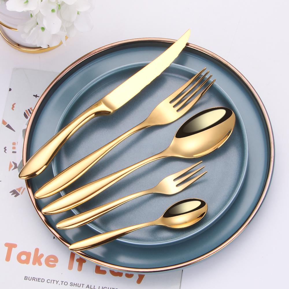 6/16/20/24 Stück Gold Geschirr Edelstahl 304 Besteckset Westliches Dinner-Set Spiegel Messer Gabel Löffel Glatter Griff Besteck