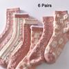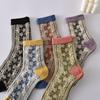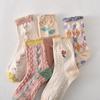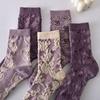 5 Paare/ Los Traumähnliche Damen Socken Harajuku Retro Stickerei Frühling 3D Strickerei Blumen Geprägter Druck Lolita Weihnachtsgeschenk