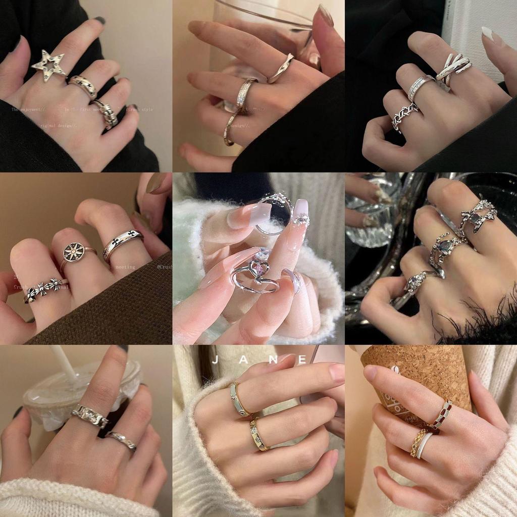 Verstellbares Ring-Set im koreanischen Stil für Damen - Enthält offene Zeigefinger- und Kettenringe
