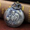 Zodiac Bronze-Taschenuhr mit 3D-geschnitztem Tierquarz-Design