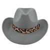 Klassischer Denim-Hut, Retro-Jazzhut mit Leopardenmuster-Ledergürtel, Wollzylinder, Retro-Imitationsschafhut