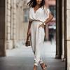 Damen Lässig Wickel V-Ausschnitt Kalte Schulter Jumpsuit Outfits Hose Romper