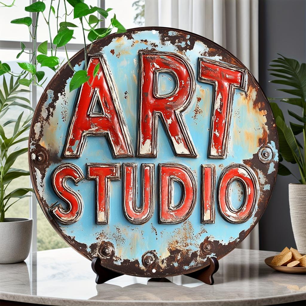 Rustikales Metallschild "Art Studio", Vintage Wanddeko mit Distressed Blau & Rot Design, Metall Wandkunst Dekor