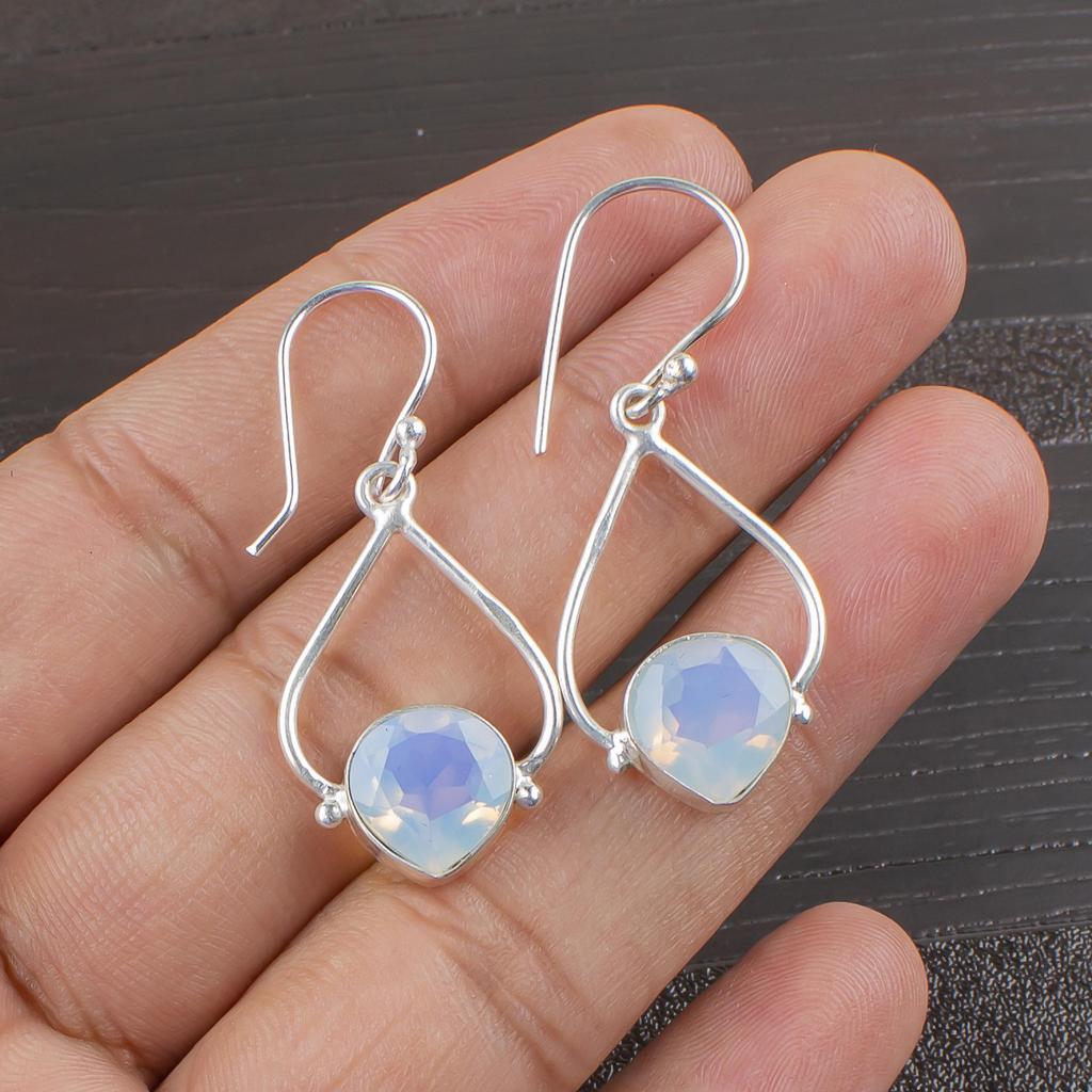 Milchiger Opal 925 Massiv Sterling Silber Ohrringe, Handgefertigter Edelstein Ohrschmuck, Geschenke für Ehefrau Brandneue Ohrringe