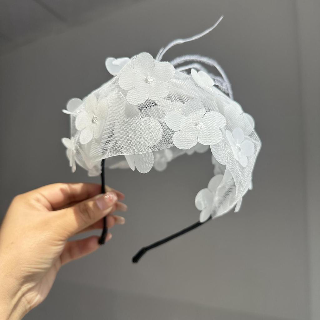 Transparenter Tüll Blumen Federn Halbhut Leichter Luxus Haarband Damen Modisch Weißes Haar verdeckendes Stirnband Französische Haarspange Damen Neue Hüte