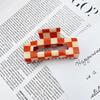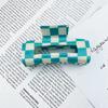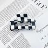 Neu eingetroffen: Modische, 8 cm große, rechteckige Haarspange mit Karomuster aus Acryl für dickes Haar – Haifisch-Haarspange