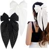 [LANGSCHWANZ-HAARBÄNDER]: Haarspangen mit großer Schleife und langem Band, Metallclip hält das Haar sicher an Ort und Stelle, halten dickes oder lockiges langes Haar gut