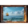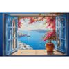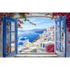 Open Window Santorini Island Ship Aegean Sea Wall Art Poster Print Greece Canvas Painting for Living Room Home Decoration