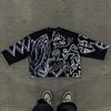 RogueWave Y2k Retro Batik Kreuz T-Shirts Gothic Hip Hop Grafik Allover-Print Crop Top für Männer Oversized Lockere T-Shirts