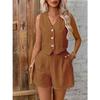 GMXIA Ärmelloses Freizeitweste und Shorts Set für Damen, Leinen Sommer Mode Zweiteiler für Damen