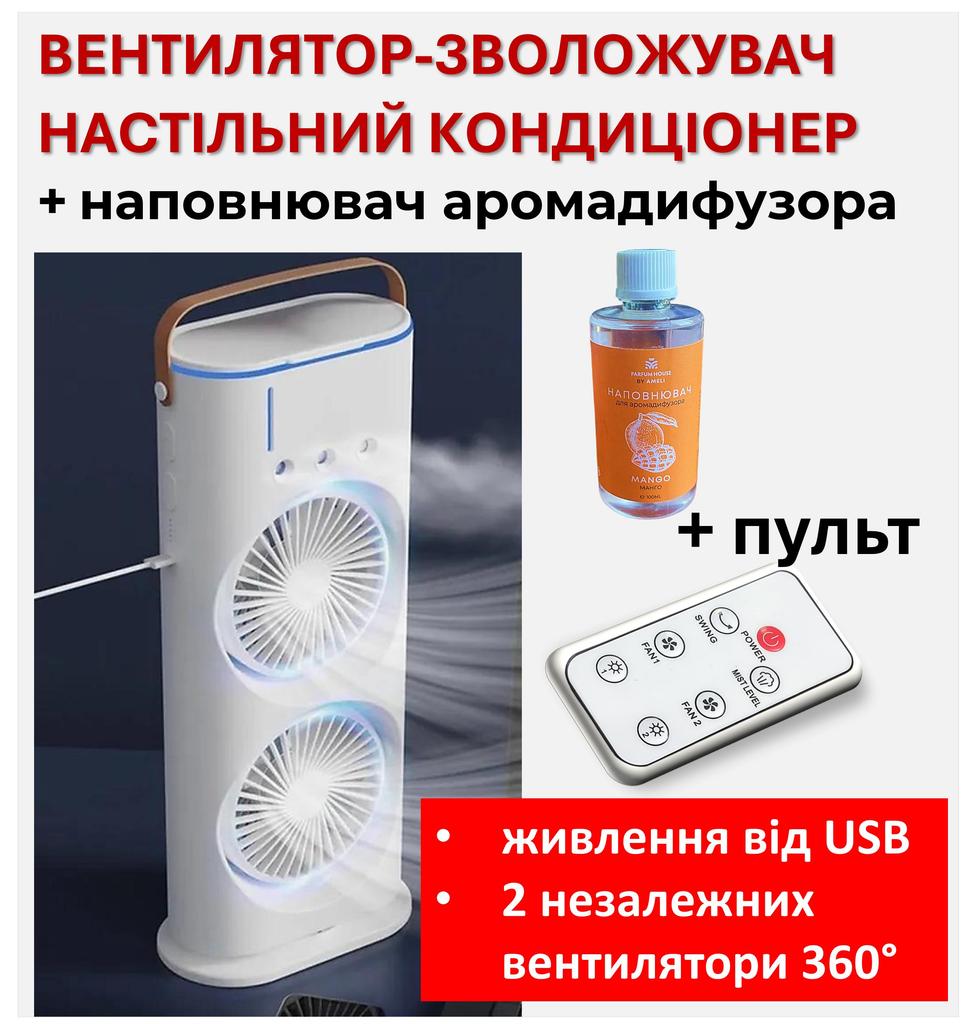 Ventilator-Luftbefeuchter, Tischklimaanlage Doppelseitiger Sprühventilator + Nachfüllpackung für Aromadiffusor