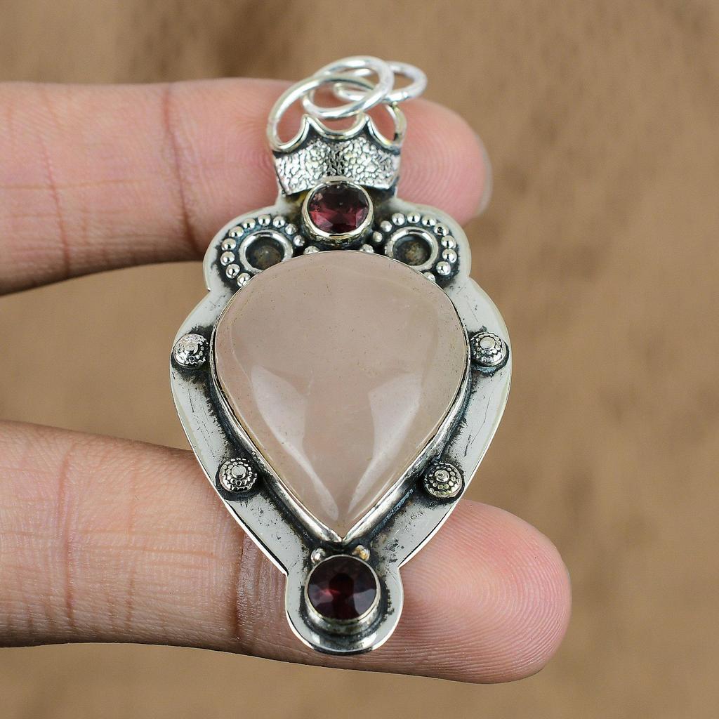 Herzchakra Rosenquarz Stein Rubellit Sterlingsilber Geburtstag Ehefrau Anhänger
