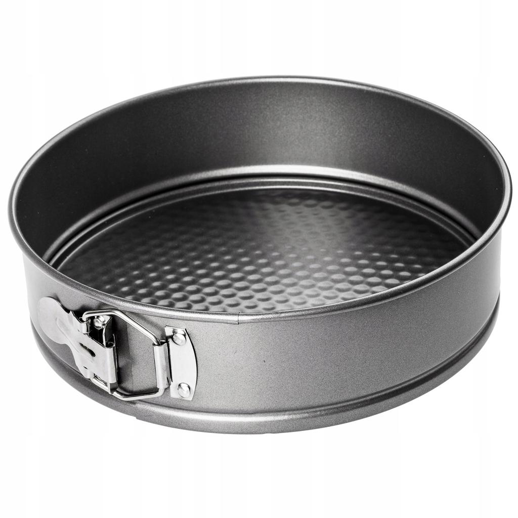 Eine nützliche und zuverlässige Antihaft-Springform, die ein Traum für Liebhaber des Backens hausgemachter, köstlicher Backwaren wie Nusskuchen, Apfelkuchen oder leckere Torten ist.. Jede anständige Hausfrau sollte in ihrem Küchenschrank eine solche Backform haben, die bei der Zubereitung köstlicher Backwaren für eine Familienfeier, eine religiöse Zeremonie, einen Geburtstag oder eine Firmenfeier hilft.. Solide Ausführung ist eine Garantie für lange Nutzung. Die geräumige Backform ermöglicht es, schnell und effizient Lieblingskuchen zuzubereiten, wie Apfelkuchen mit Baiser, Jakobskuchen, Doskonalec, Shrek, bunter Gugelhupf, Biskuit mit Äpfeln, Pudding- oder Apfelkuchen, Karpatka, Apfelkuchen oder Lebkuchen.. Dank der Antihaftbeschichtung bleibt der Teig nicht auf dem Blech kleben, wodurch das Reinigen der Springform einfach ist.. Die praktische Form sollte durch Schutzhandschuhe verwendet werden, um die Sicherheit zu gewährleisten.. Die funktionale und runde Springform ist einfach zu bedienen, wodurch sie sich erfolgreich für den Gebrauch durch Kinder eignet, die in das häusliche Backen von Muffins oder Kuchen für eine Geburtstagsfeier, den Besuch der Großeltern oder den Besuch der Tante aus dem Ausland einbezogen werden können.. Für Backkomfort sorgt eine Oberfläche mit Erhebungen, die ein übermäßiges Anhaften des Teigs an der Form und eine Verformung des fertigen Backwerks verhindert.. Vor dem Backen sollten die Wände mit Fett bestrichen werden.. Das Produkt ist mit einem speziellen Verschluss ausgestattet, der es ermöglicht, den Boden vom Rest des Blechs zu trennen, was zum Beispiel zum Waschen der Springform oder zum Verstauen im Schrank, in der Küchenschublade oder in der Speisekammer nützlich ist.. Das Produkt ist aus Stahlblech gefertigt, das sich durch Zug- und Druckfestigkeit, Härte, Elastizität, hohe Schmelztemperatur, Wärme- und elektrische Leitfähigkeit auszeichnet.. Das Material schützt den Gegenstand vor Korrosion und chemischen Einflüssen und ist daher hervorragend zum Backen geeignet.. Das Material des Produkts behält seine Leichtigkeit, verursacht kein Gefühl von Schwere in der Hand, was sich positiv auf den Nutzungskomfort, das Anheben der Springform oder ihren Transport beispielsweise vom Abtropfgestell in den Schrank auswirkt.. Jeder Backliebhaber sollte sich mit anderen Produkten aus der Serie ausstatten: Muffinblech, quadratische und rechteckige Springform, Förmchen für Cupcakes – das Set ermöglicht die Zubereitung verschiedener köstlicher Leckereien für den Besuch von Gästen.. Die Abmessungen des Artikels betragen 24 oder 26 cm Durchmesser.