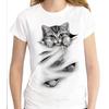 Damen Sommer T-Shirt Trend Kätzchen Druck Retro Mode Kurzarm Tees Lässig Bedruckte Oberteile