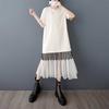 Damen Locker Lässig Spitze Patchwork Mittellang T-Shirt Kleid