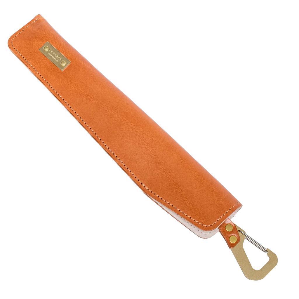Ein Fächeretui aus echtem Leder mit Karabiner, gefertigt aus Himeji-Grubengegerbtem Leder von TAVARAT, einer Herrenartikelmarke aus Osaka.