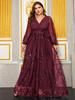 Damen Übergröße Pailletten Blumen Abendkleid mit Laternenärmeln und V-Ausschnitt